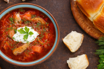 Борщ с курицей, свежей капустой и помидором — простой и очень домашний вариант любимого супа.