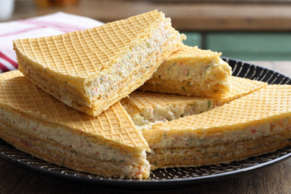 Закусочный вафельный торт с крабовыми палочками — это простая и эффектная холодная закуска, которая готовится буквально за несколько минут.