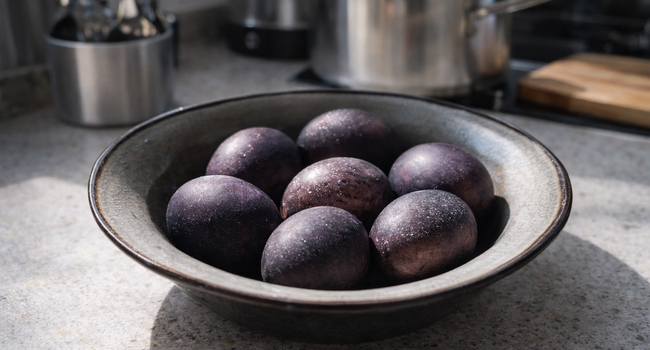 3․ Снимите с плиты и оставьте яйца остывать в кастрюле с вином под крышкой на несколько часов.