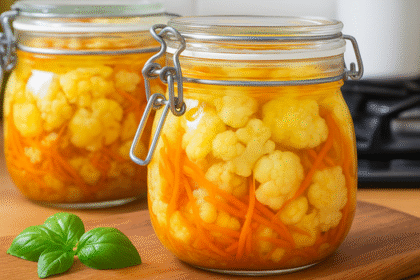 Маринованная цветная капуста по-корейски на зиму — это отличная закуска с пряным вкусом и ярким ароматом.